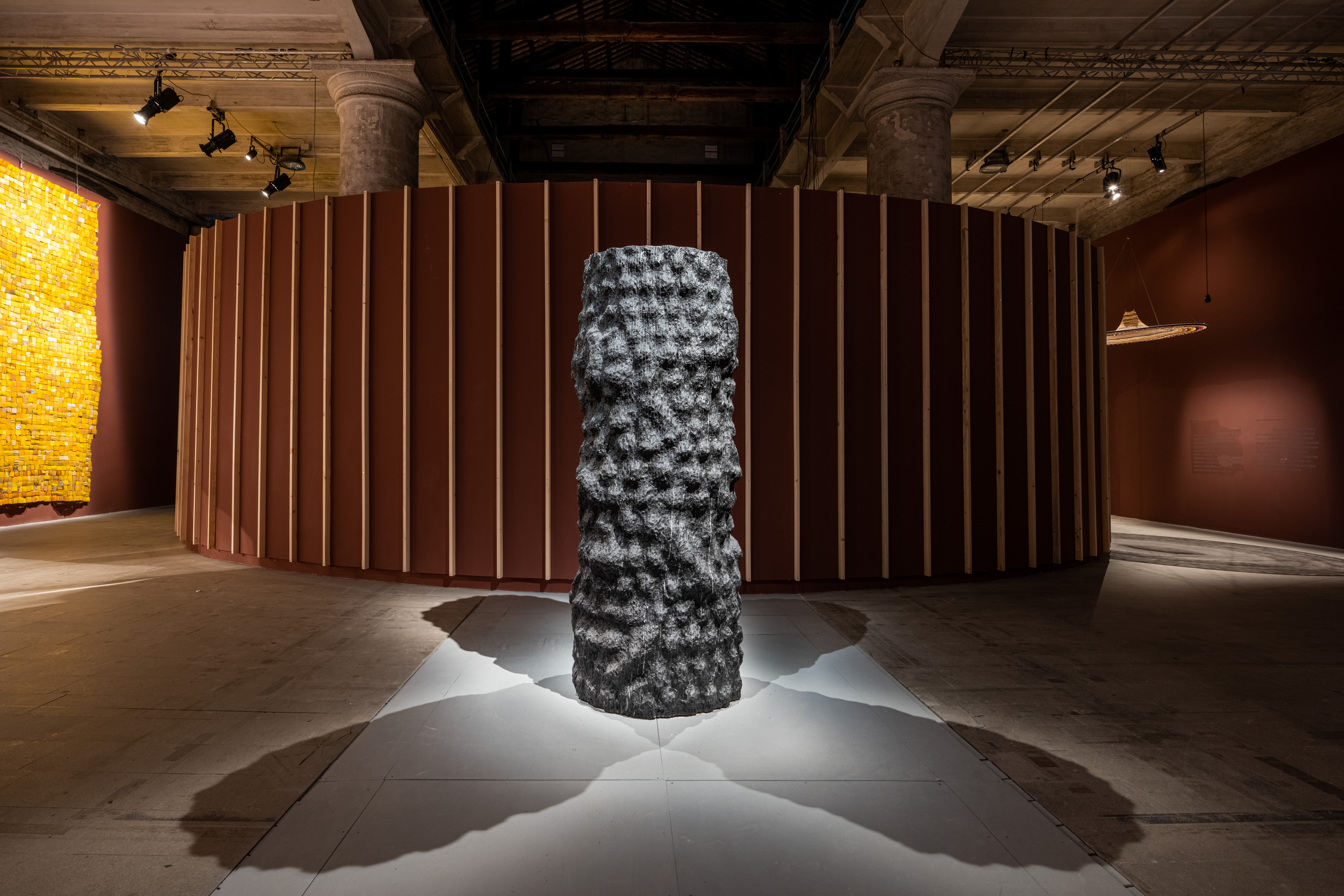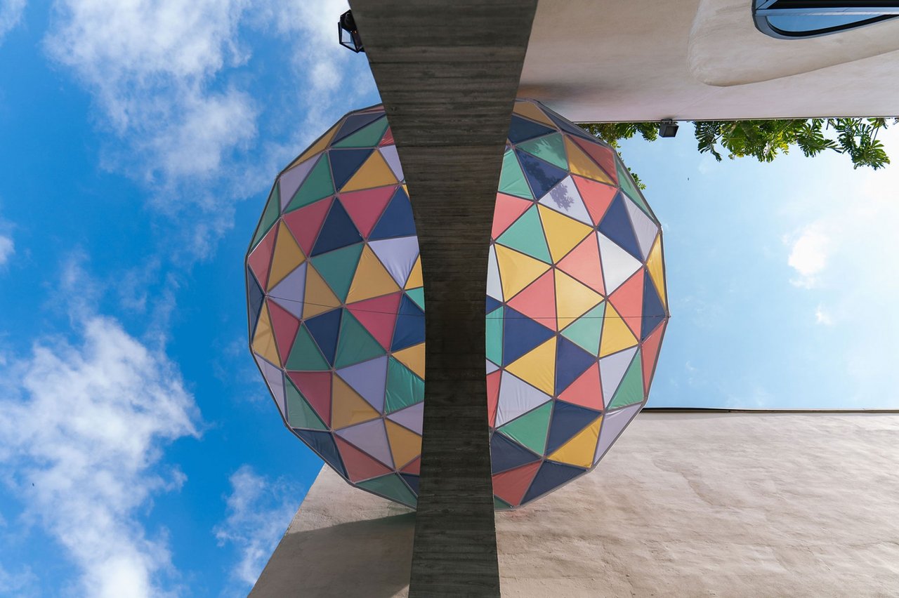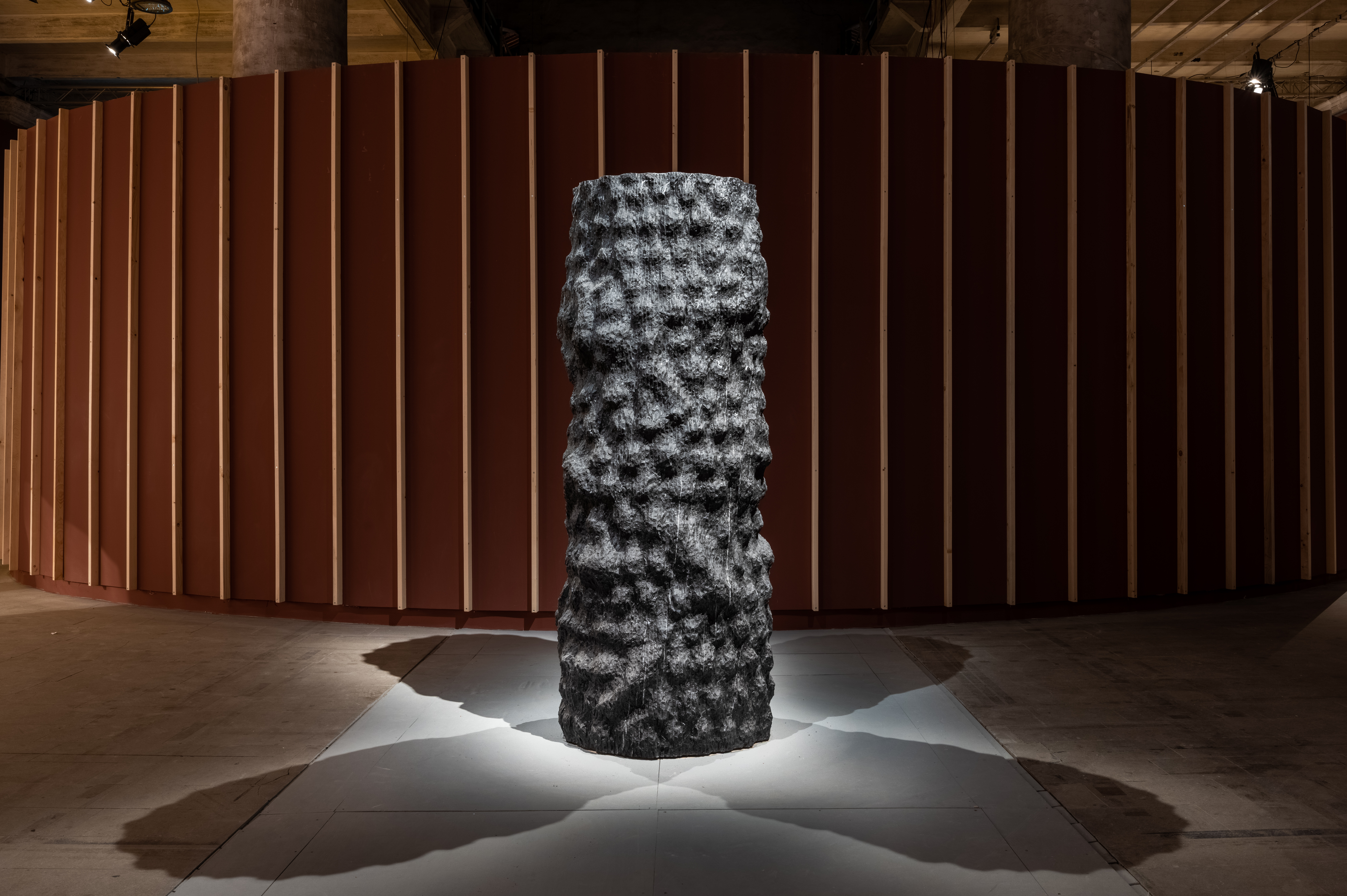 Named after a type of African woven-wood basket, Ukhamba is a ten-foot-tall circular structure with four arched entrances, built of curved wooden elements stacked in horizontal layers. Its construction invites visitors to walk inside and congregate but allows the surrounding plaza and urban landscape to remain visible through the structure. Inspired by Barnes’ time working abroad in South Africa, as well as in Miami, Ukhamba not only responds to Miami’s sub-tropical climate but also unites architectural elements typical of diasporic communities of African and Caribbean origin. It comprises a pavilion that appears part basket, part traditional breeze wall.